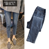 婩泺儿牛仔裤女2020初秋季新款大码女装胖mm弹力牛仔裤九分裤女新款显瘦修身小脚裤女 (高品质蓝色)现货 XL(100-120斤)