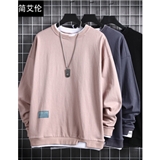 简艾伦 卫衣男T恤男士潮牌ins大码宽松圆领假两件长袖2020春季新款潮流上衣 TBK19209粉红色 XL