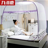 九洲鹿 蚊帐家纺 免安装方顶蒙古包三开门蚊帐有底拉链钢丝可折叠 雪绒花 紫 1.8米床