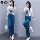 梓龄 休闲运动套装女卫衣套装女2020夏季新款气质女神范洋气时尚减龄休闲阔腿两件套女 蓝色 请拍对应码数