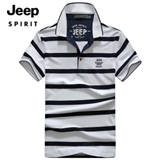 JEEP 短袖t恤男2020夏季商务休闲男装T恤男士条纹翻立领半袖体恤polo衫上衣打底衫潮流都市 0078白色 2XL
