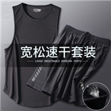 艾伦伯顿(Alen Botun)运动套装男速干跑步夏季冰丝衣宽松背心短裤健身房篮球服训练衣服 159黑【冰丝套装】 2XL(160-190斤)