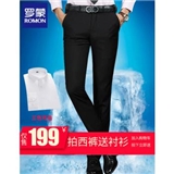 罗蒙 西裤男夏季修身薄款商务新款韩版正装裤男黑色青年休闲裤工装西装裤子 黑色薄款【西裤+衬衫】 32