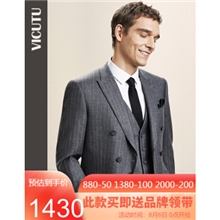 威可多VICUTU男士套装西服上衣羊毛混纺灰色双排扣商务西装男VRS18312949 中灰 175/96B