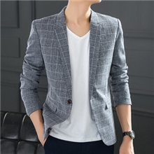 西服男春秋仿亚麻男士休闲西服格子小西装修身韩版潮流单西外套帅气上衣夏季超薄款颜丁 格子 灰色 48/M【115斤以内】