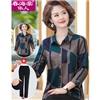 春海棠依人中老年女装衬衣休闲百搭外套上衣服春秋新款奶奶装长袖衬衫妈妈装翻领宽松大码开衫套装+休闲长裤 FH2101绿色+裤子 XL【建议85-100斤】