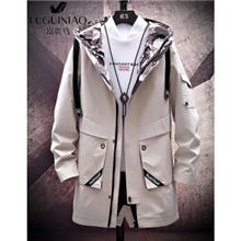 富贵鸟风衣男中长款外套春秋款青年时尚宽松连帽工装夹克男大码韩版加绒加厚外套男 1033卡其色--春秋款 XL码(适合120-140斤)
