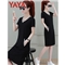 鸭鸭服饰(yaya)休闲运动连衣裙女中长款2020夏季新款宽松显瘦短袖V领T恤衬衫裙时尚女装裙子女 黑色 请选择正确尺码