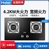 Haier/海尔 JZT-QE5B2(12T) 燃气双灶 天然气灶具台嵌两用熄火保护钢化玻璃灶面板【防爆玻璃/黑色】