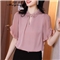 摩纤衬衫雪纺衫女仿 真丝2020夏季新款时尚气质纯色显瘦五分袖衬衫 粉色 S【建议95斤以内】