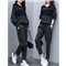 歌卡兰卫衣套装女牛仔2020秋季新品休闲气质显瘦时尚套装女运动服连帽外套女牛仔裤宽松卫衣女2317 黑色 XL