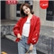 花月斐刺绣短外套女2020新款韩版宽松亮片棒球衫简约显瘦女士外套1992 红色 L