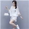 卿依瑟 卫衣短裤套装女2020夏季新款镂空拼接V领时尚卫衣上衣大码宽松时尚休闲百搭套装短裤俩件套女装 白色 M