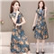 格素凡 连衣裙女夏装2020新款韩版V领雪纺碎花长裙阔太太旗袍式中长款显瘦印花过膝蕾丝裙子大码女装潮 蓝色(F92) 女-L 建议体重90-105斤