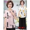 商茵SY中老年女装妈妈装2020年新款夏装短袖衬衫减龄洋气雪纺衫中年人t恤中老年女装上衣+裤子套装 粉红色+阔腿裤 2XL【建议105-120斤】