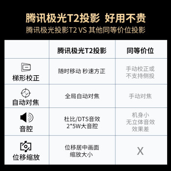 腾讯极光T2 投影仪家用 智能投影机 手机投影 投影电视(1080P 自动梯形校正 全自动对焦 支持无线同屏) |