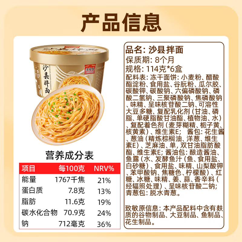 海福盛沙县拌面114g原味 |