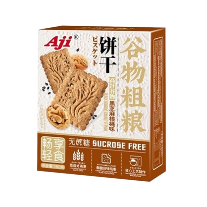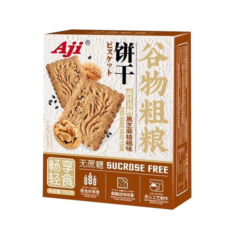 Aji谷物粗粮无蔗糖饼干黑芝麻核桃味160g |