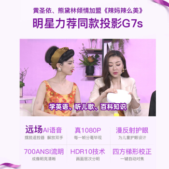 坚果G7S 投影仪家用 投影机 卧室家庭影院 投影电视(1080P全高清 自动对焦 梯形矫正 AI语音 时尚活珊瑚橘) |