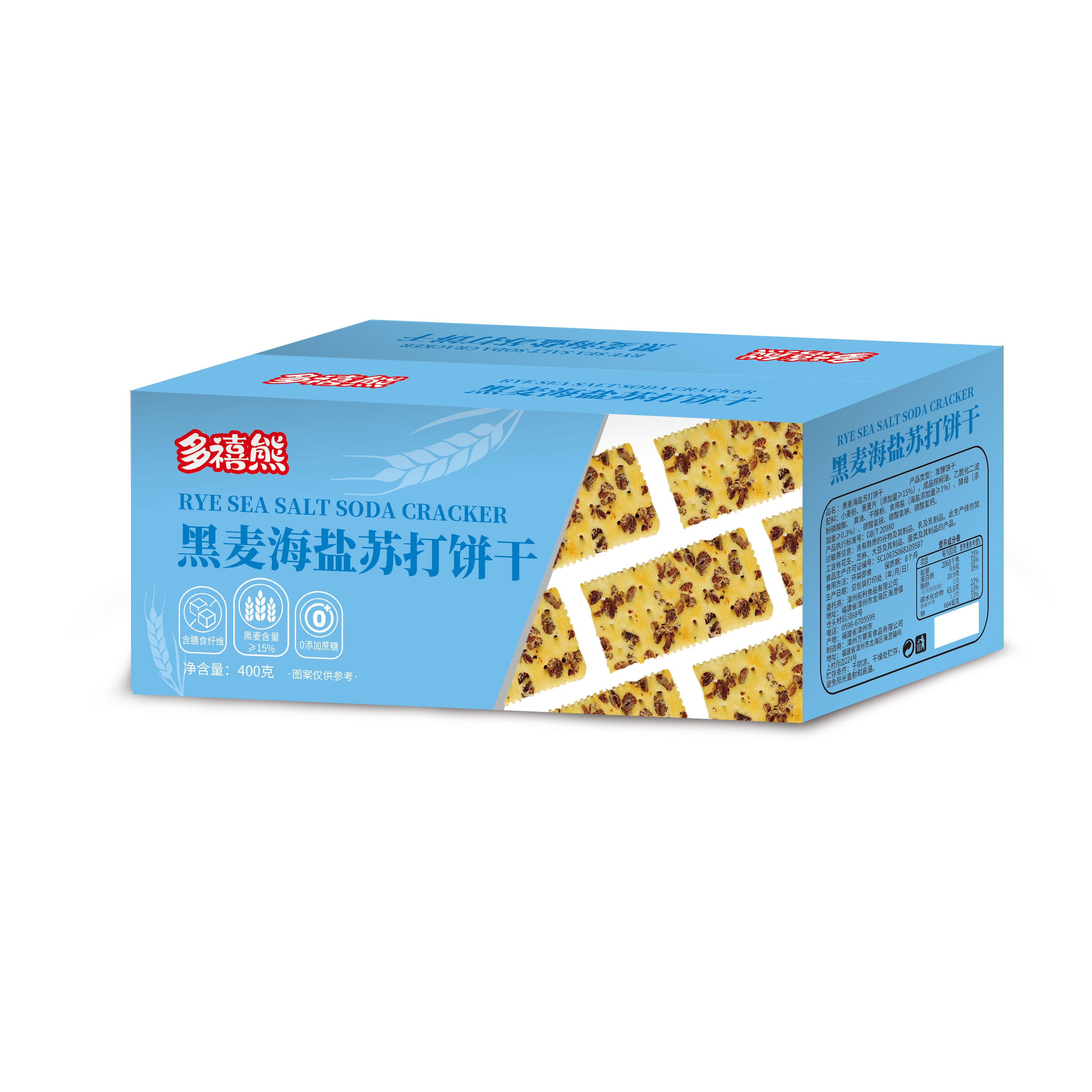 多禧熊黑麦海盐苏打饼干400g |