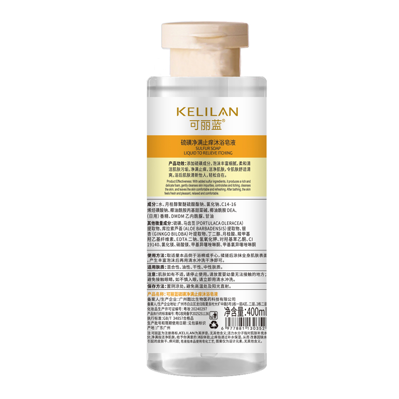 可丽蓝硫磺净满止痒沐浴皂液400ml |