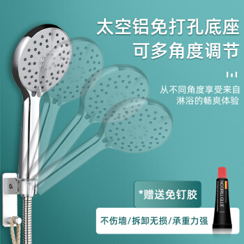 沐唯(muvi)免打孔四功能手持花洒 增压带自洁防堵花洒淋浴喷头套装 浴室沐浴手持洗澡莲蓬头三件套H-003 |