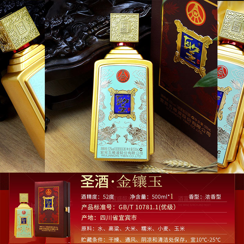 52°五粮液 聖酒 圣酒金镶玉 豪华单瓶礼盒(每两瓶送1只原厂手袋) |