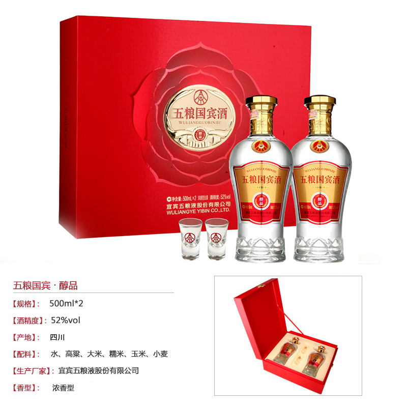 52°五粮国宾醇品 礼盒装(带酒具) |