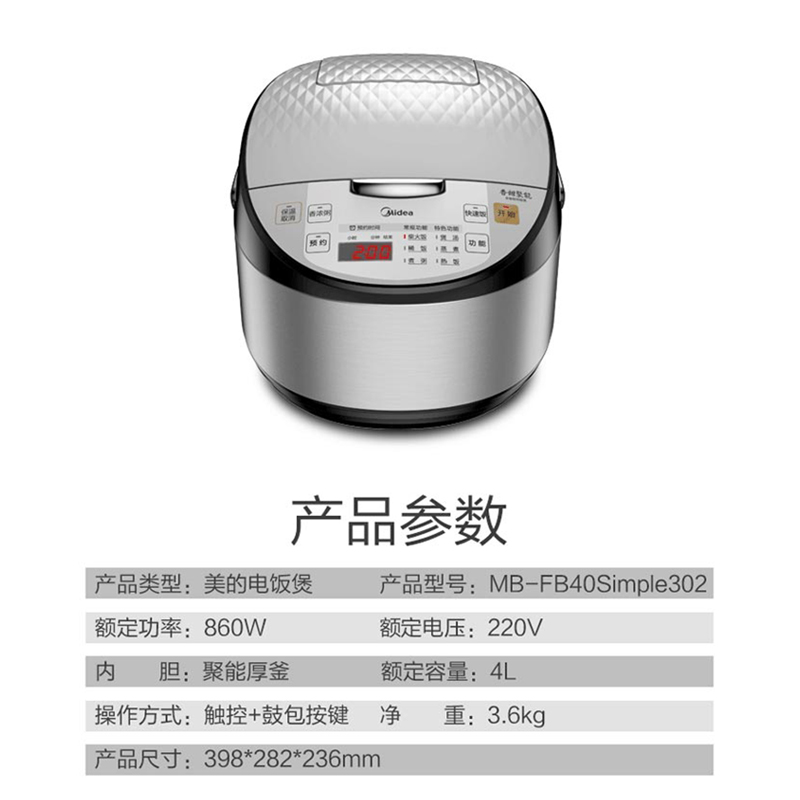 美的(Midea)电饭煲家用4L热饭烧汤烧粥智能【拉丝金属/银色】 |