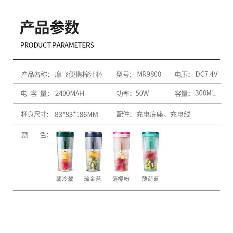 摩飞新品 榨汁杯家用水果迷你小型果汁杯电动便携式炸果汁机无线榨汁机【PCTG/琉金蓝】 |