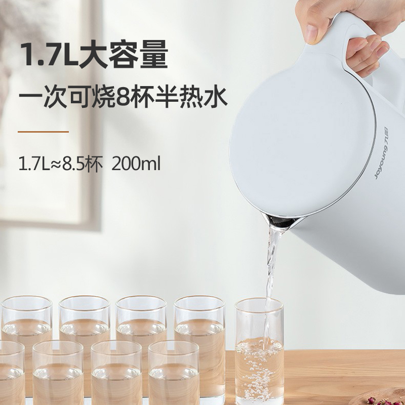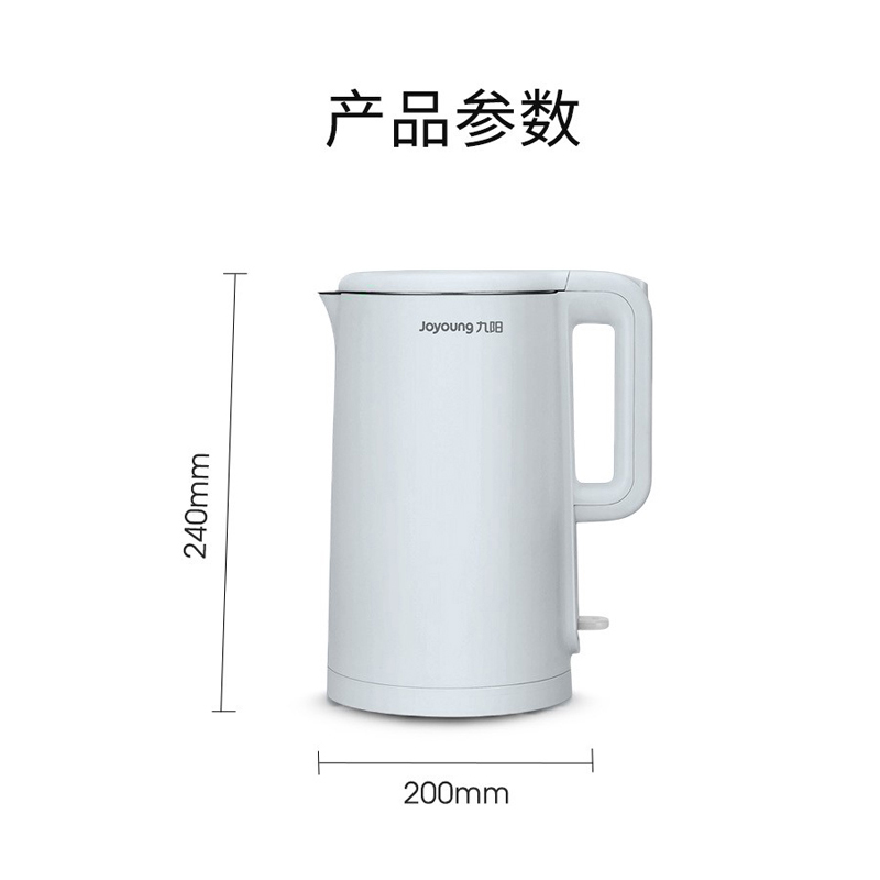 九阳热水壶烧水壶电水壶 双层防烫304不锈钢 家用大容量电热水壶【外塑内钢/白色】 |