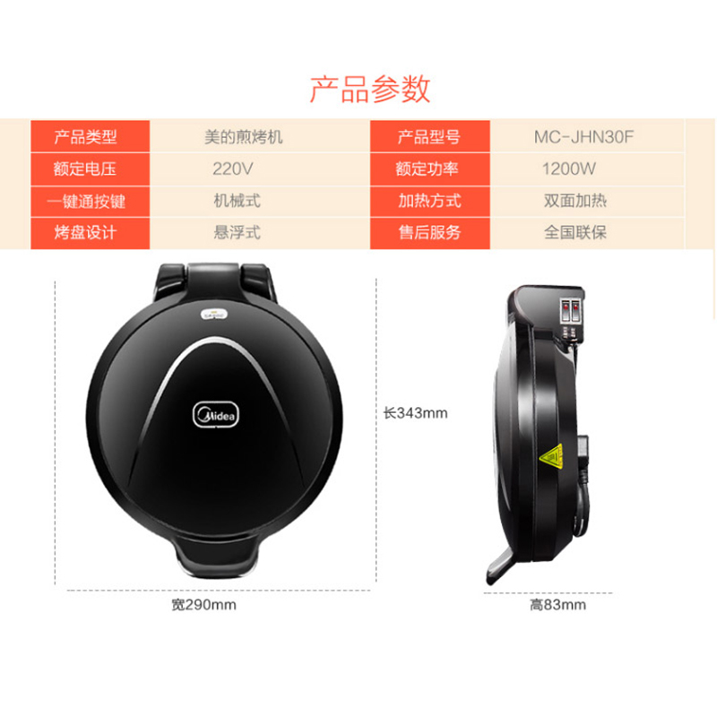 美的(Midea)电饼铛家用双面加热煎烤机烙饼机【其他/黑色】 |