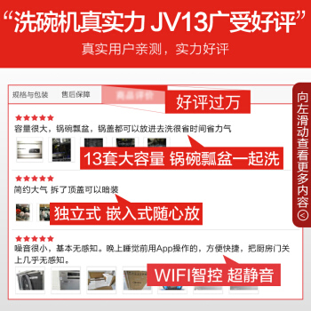 美的(Midea)13套 独立式 家用洗碗机 超大容量 银离子抑菌 热风烘干 WIFI智控 嵌入式刷碗机JV13 |