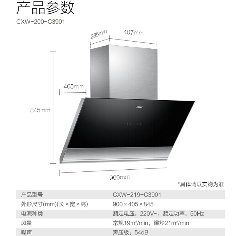 Haier/海尔油烟机CXW-219-C3901智慧免清洗350Pa大风压高层专用【钢化玻璃/黑色】 |