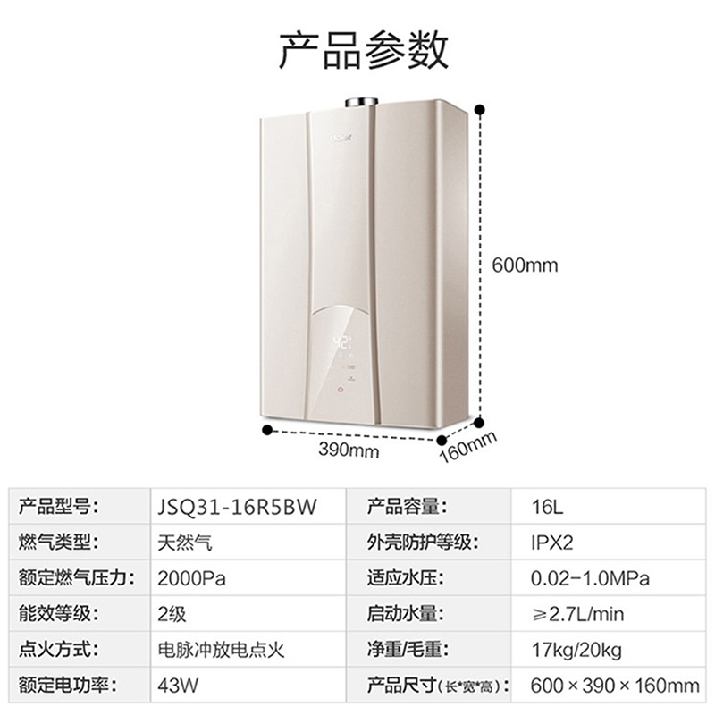 Haier/海尔 JSQ31-16R5BW 零冷水 三管大水量 双感恒温 低压启动 天然气【不锈钢/金色】 |