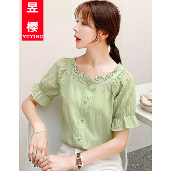 昱樱衬衫女时尚雪纺衫女2020年夏装新款小个子学生泡泡袖韩版潮流短袖t恤短衣服小衫上衣欧洲站衬衣女 浅绿色 此码勿拍.请拍自身对应码数 |