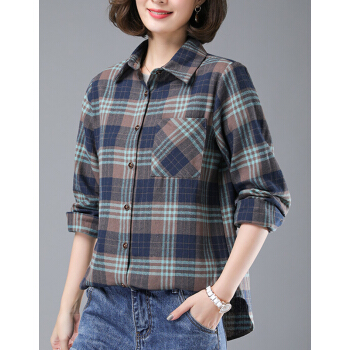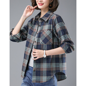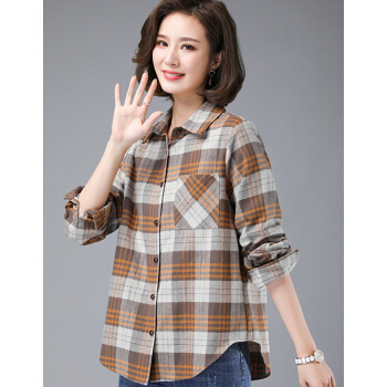婪澈衬衫女2020女装夏季新款韩版显瘦时尚韩版休闲中年女士大码宽松衬衣潮格子衬衫女长袖 卡其色 请拍正确尺码 |
