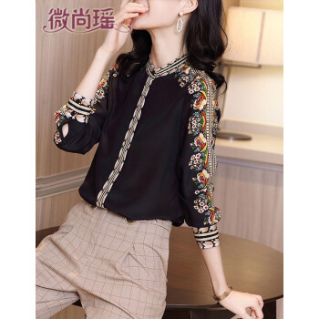 微尚瑶衬衫女2020秋季新款复古港风印花长袖衬衫女气质优雅设计感小众系扣开衫女上衣7008 黑色 请拍正确尺码 |
