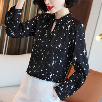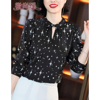 微尚瑶衬衫女2020秋季新款复古娃娃领长袖星星印花女衬衣潮时尚减龄气质优雅镂空小衫女7000 花色 请拍正确尺码 |