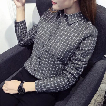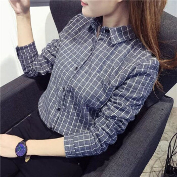 得听衬衫女2020新款纯棉格子衬衫女长袖宽松2020秋季韩版百搭学生休闲磨毛打底衬衣 杏色 M(100-110斤) |