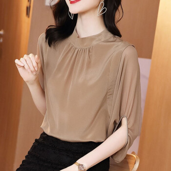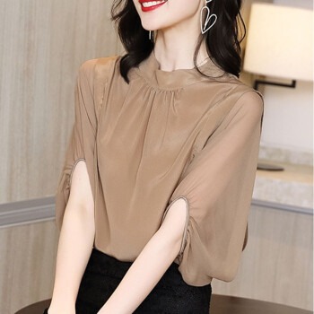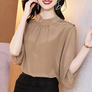 迪芽衬衫女2020秋季新品时尚韩版ins潮流纯色上衣宽松显瘦短袖圆领套头妈妈装8255 咖啡色 请拍正确尺码 |