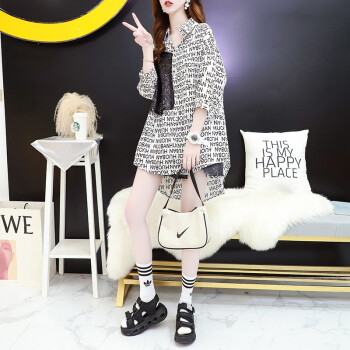 小赖猴字母印花五分袖衬衫女中长款夏装2020新款宽松设计感休闲亮片衬衣 白色 均码 |