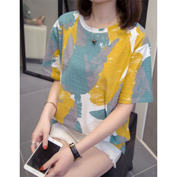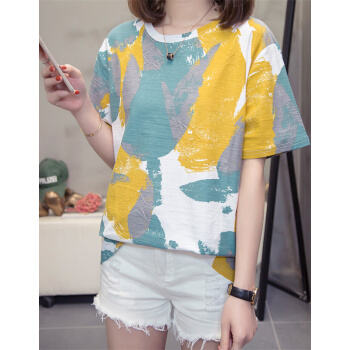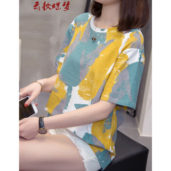 云妆蝶梦短袖t恤女大码女装棉麻2020新款夏季学生t恤卫衣显瘦减龄宽松半袖上衣女 黄色 L(建议90-120斤) |