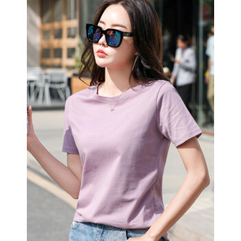 红粉宣言2020夏季新款百搭宽松纯棉短袖T恤女显瘦 香芋紫 L |