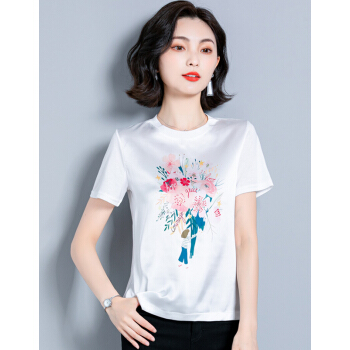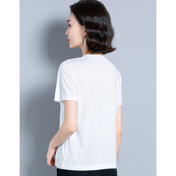 婪澈短袖T恤女2020女装夏季新款韩版时尚气质圆领印花衣服t恤女显瘦拼接上衣女 白色 请拍正确尺码 |