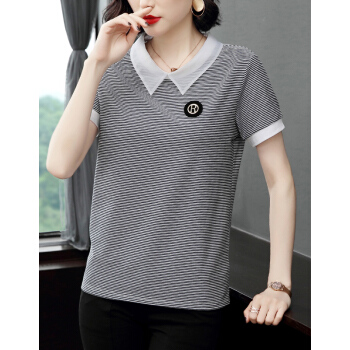 【精选好货】晞薇条纹T恤女短袖POLO领2020夏装新款中年妈妈体恤棉上衣宽松百搭打底衫夏 白色 M |