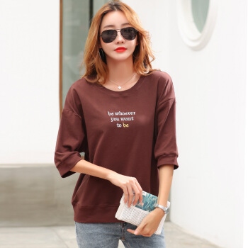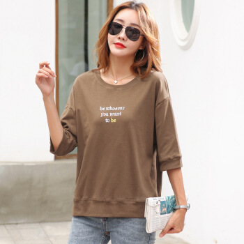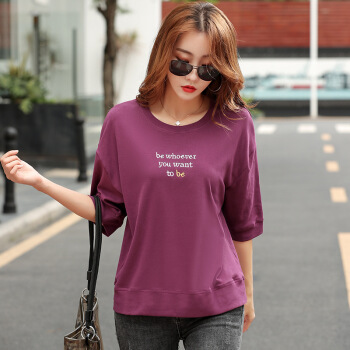 薇妃妙短袖气质t恤女2020夏季新款时尚宽松显瘦百搭体恤衫 天蓝色 L |