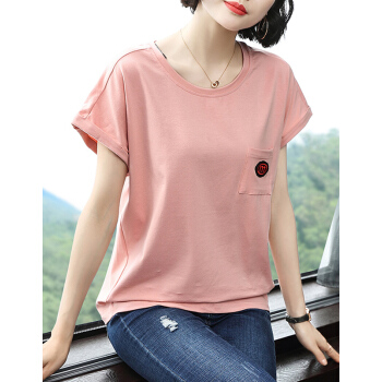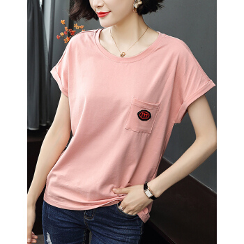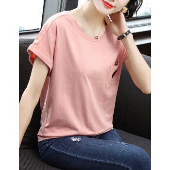 【精选好货】韩可思t恤短袖女2020夏装新款宽松显瘦中年妈妈棉粉色打底衫时尚小衫洋气百搭体恤夏 粉色 请拍正确尺码 |