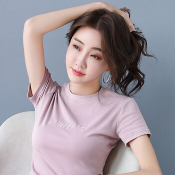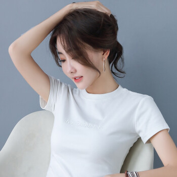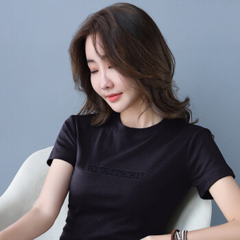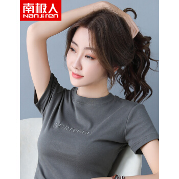 南极人 纯棉短袖t恤女2020春夏新款女装修身显瘦高弹力纯色简约百搭圆领多色可选刺绣字母上衣打底衫 深灰色 M |