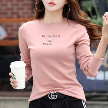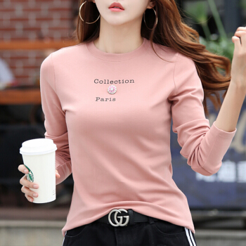 薇妃妙长袖t恤女2020秋季新款韩版时尚百搭弹力圆领打底衫 5370-粉色 S(80-95)斤 |